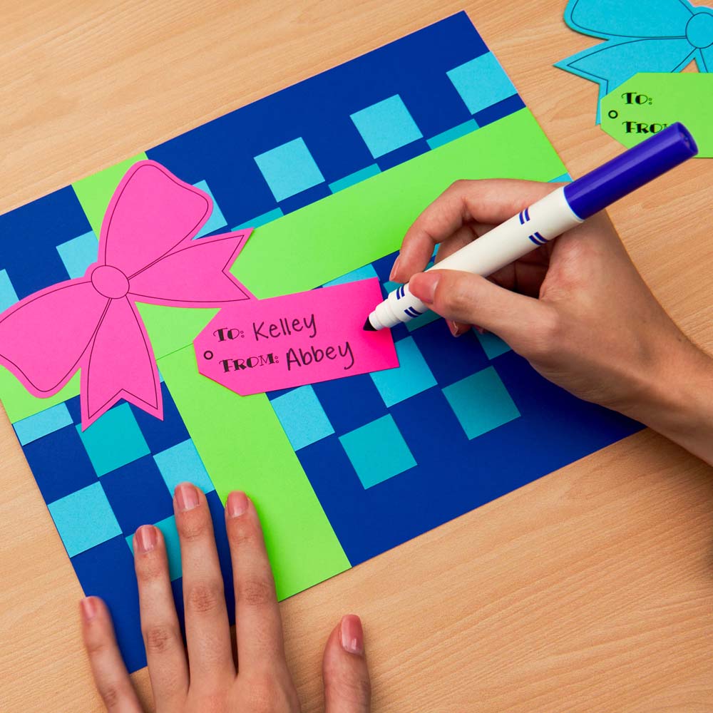 Download to your desktop. Weave vibrant Astrobrights colors together to create a wrapped-gift paper weave design. Add a bow and a gift tag for a playful holiday craft kids can personalize. Great for classroom décor, bulletin boards, and gifting projects.